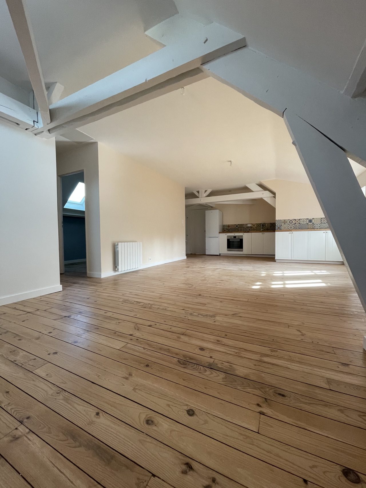 Nous vous dévoilons le Projet Courteline, un plateau brut que nos équipes ont rénové en l’espace de 4 mois. Pour ce projet d’envergure, sous les toits de Brive, notre cliente nous a laissé carte blanche pour lui créer un T2 lumineux et chaleureux. La création de deux fenêtres de toit nous ont permis de capter un maximum de lumière dans la pièce de vie et de proposer une chambre avec dressing. L’isolation, l’électricité, le chauffage, la cuisine, la salle d’eau : tout a été refait!