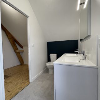 Pour ce qui est de l’étage, deux chambres et une salle d’eau ont été créées afin de le rendre plus fonctionnel.